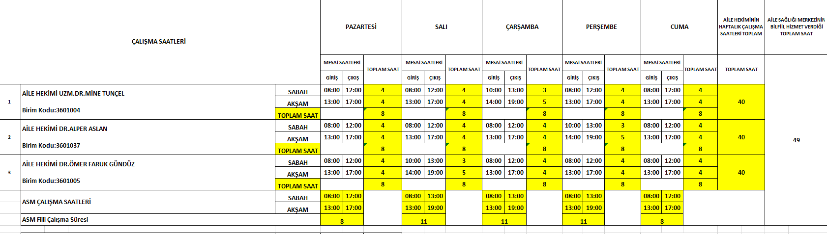 ÇALIŞMA SAATLERİ 08:00-12:00 VE 13:00-17:00 ARASINDADIR.